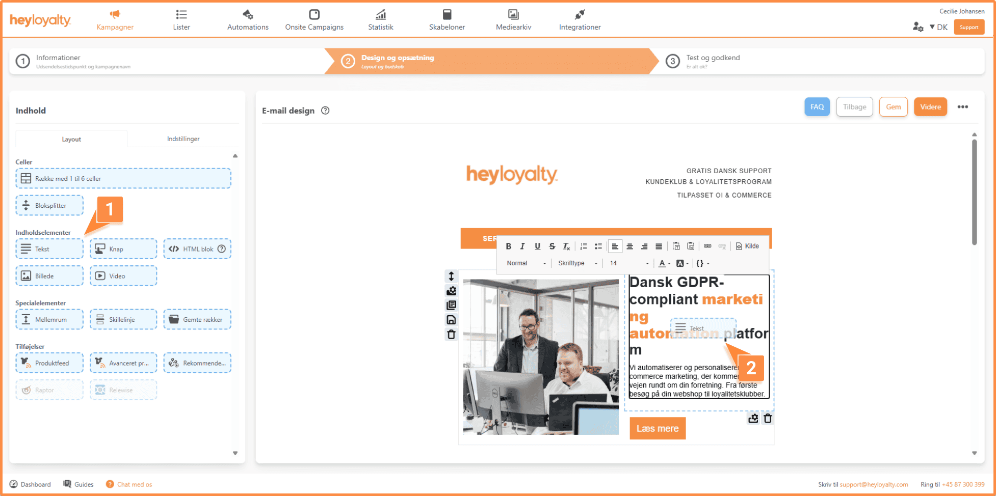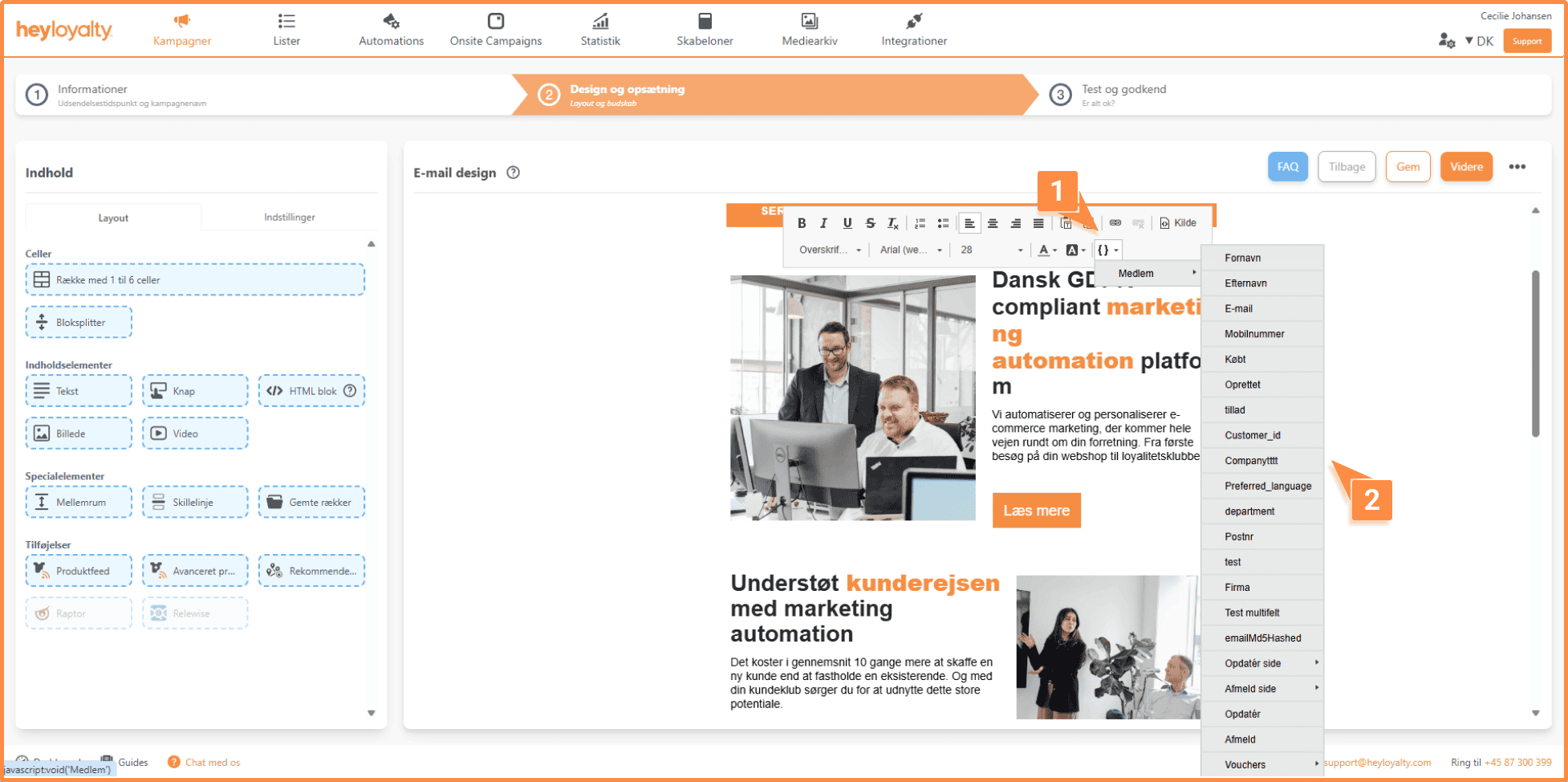 Du har nu styr på fundamentet for, hvordan du opsætter din kampagne, placerer indholdet i din mail og hvilke elementer, du kan indsætte.