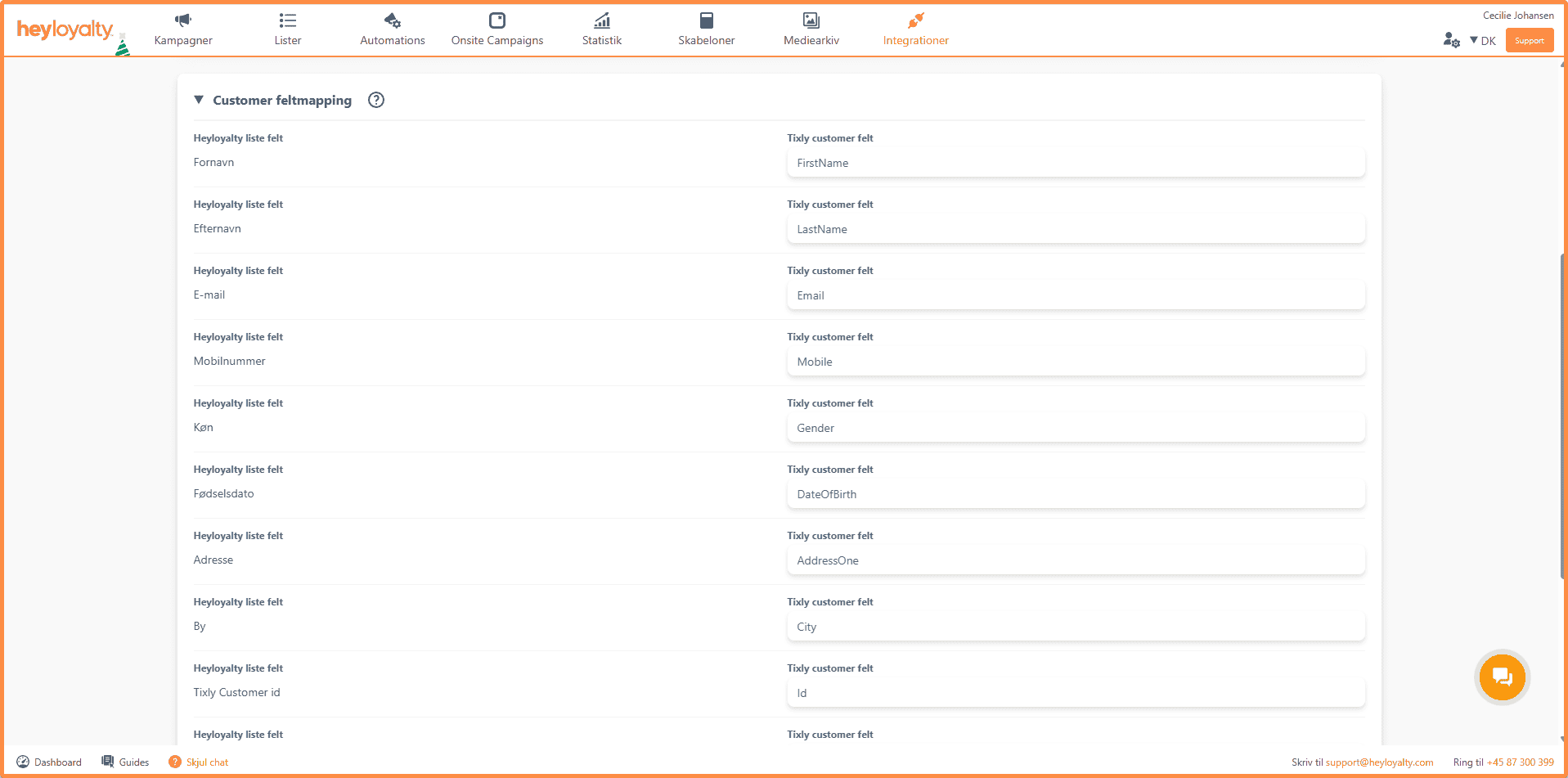 Du kan se, hvilke felter der mappes i integrationen her.