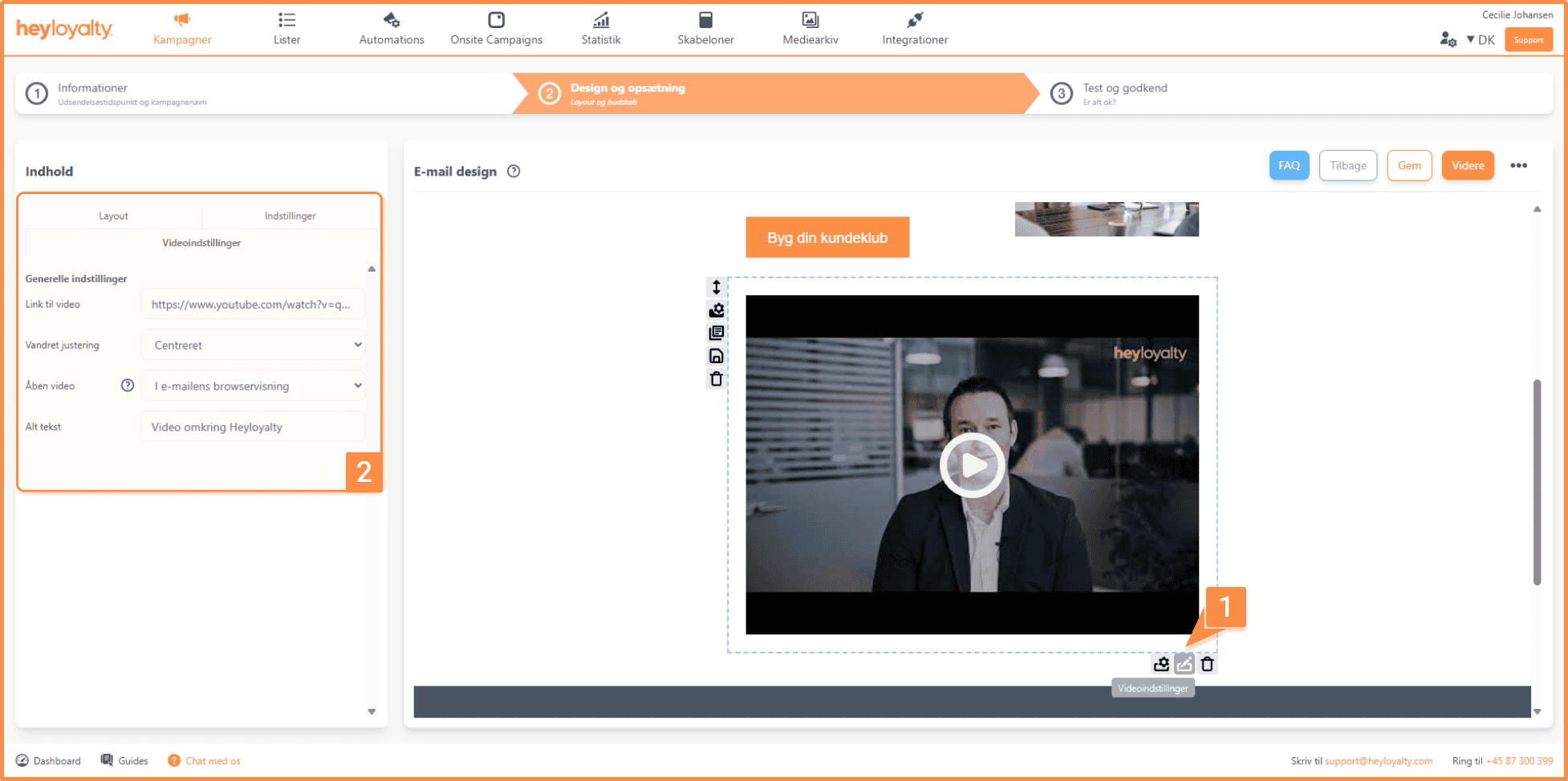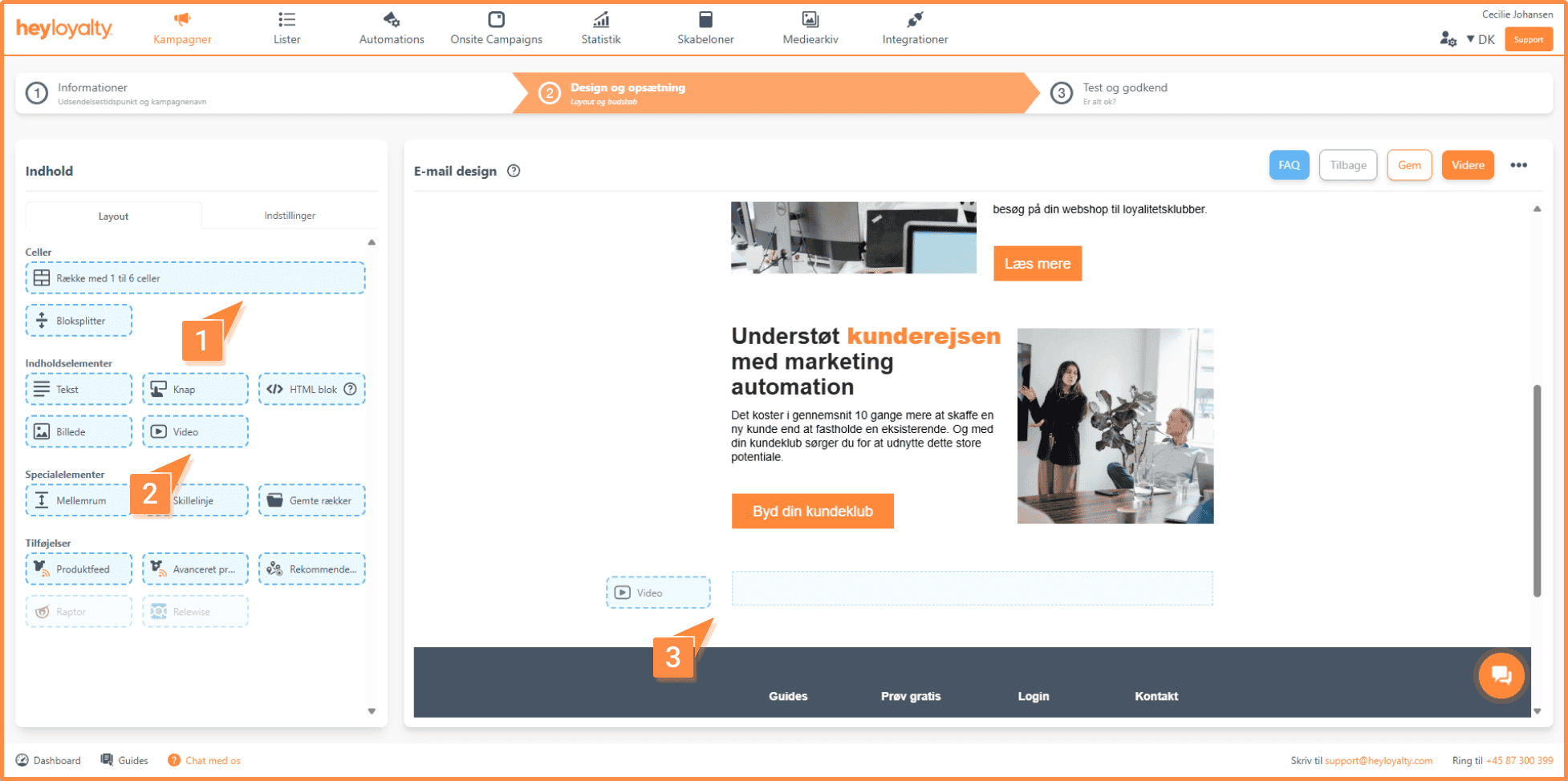 På step 2, hvor du opbygger din e-mail, kan du indsætte et videoelement.