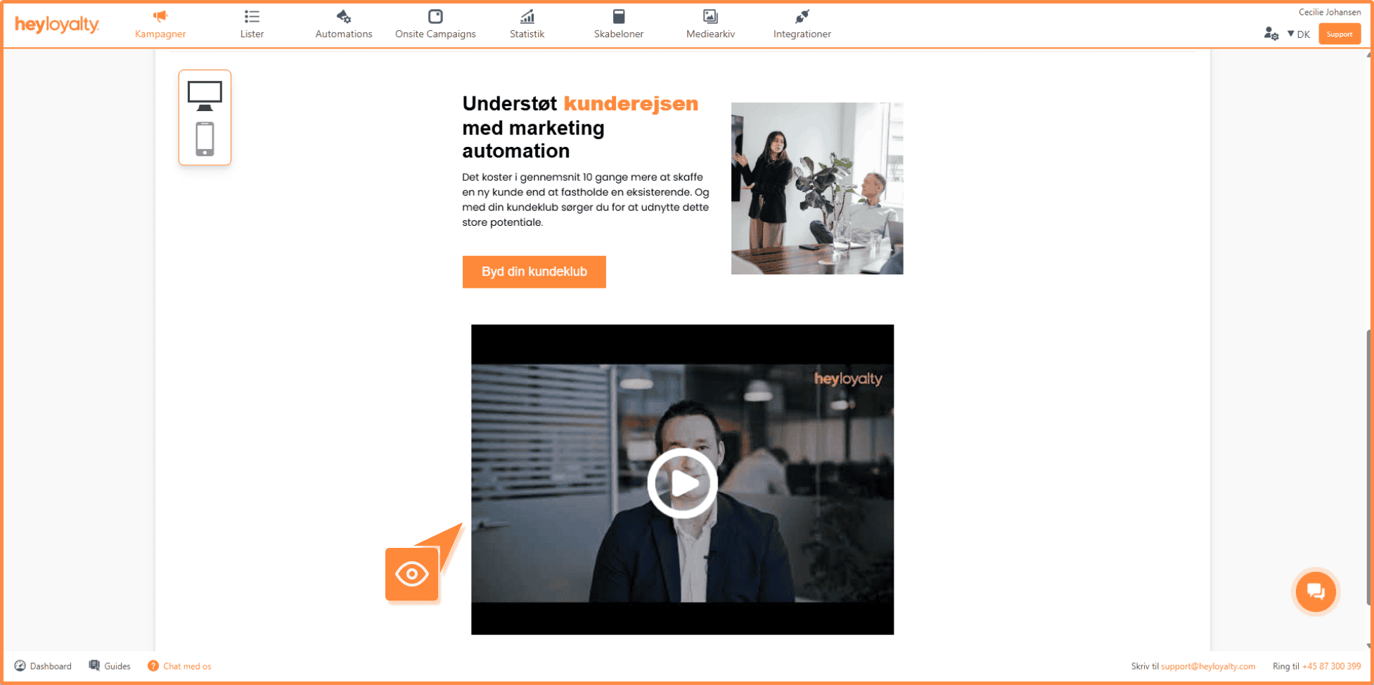 I denne guide gennemgår vi, hvordan du opsætter et videoelementet, og hvad du kan forvente af videoens visning, når kampagnen bliver sendt.