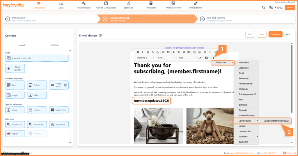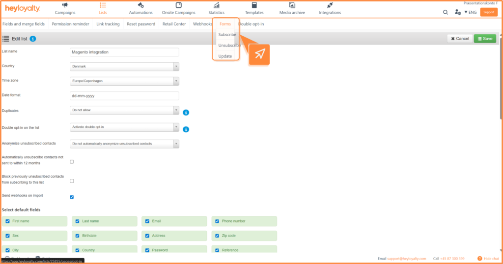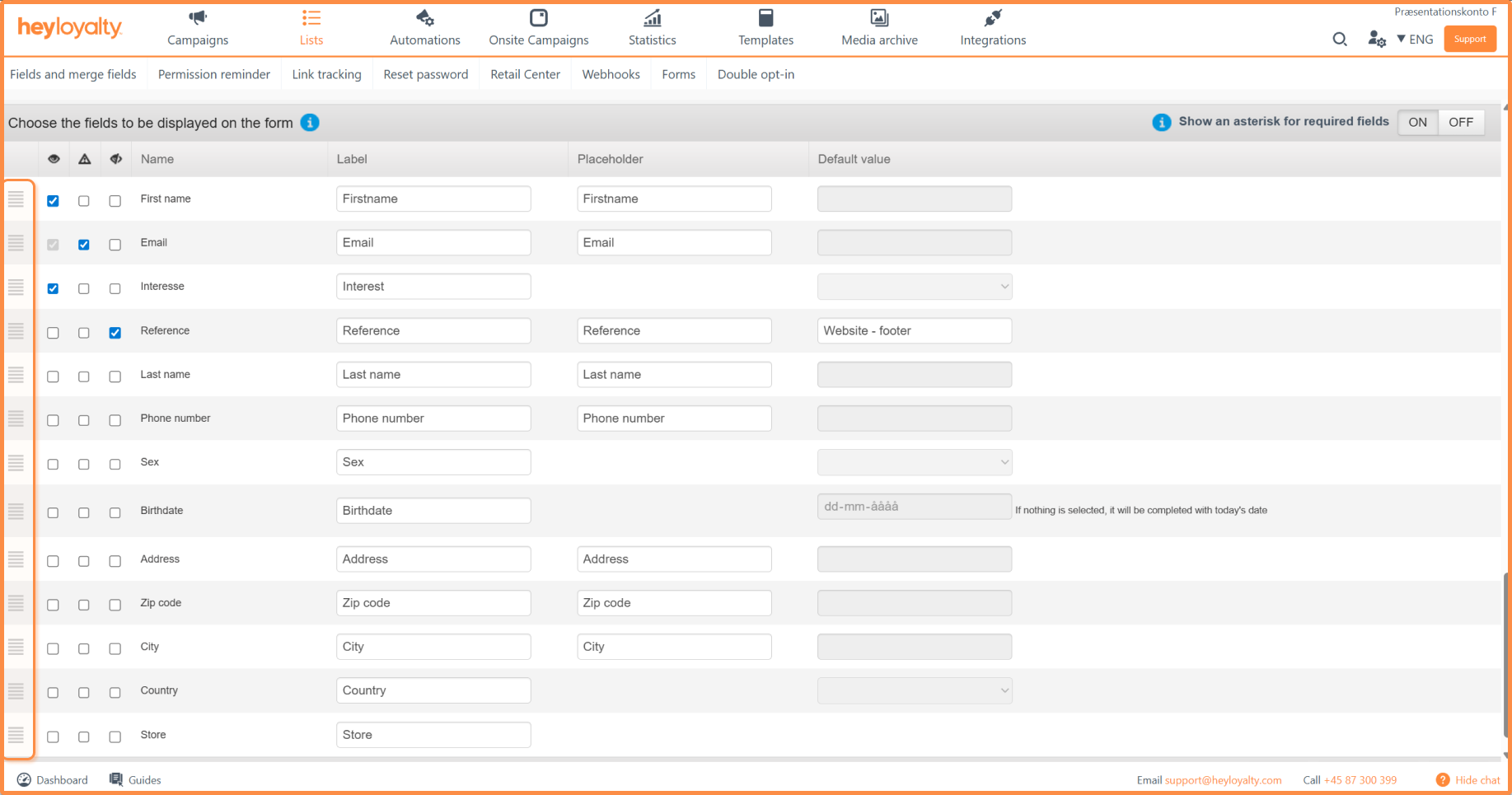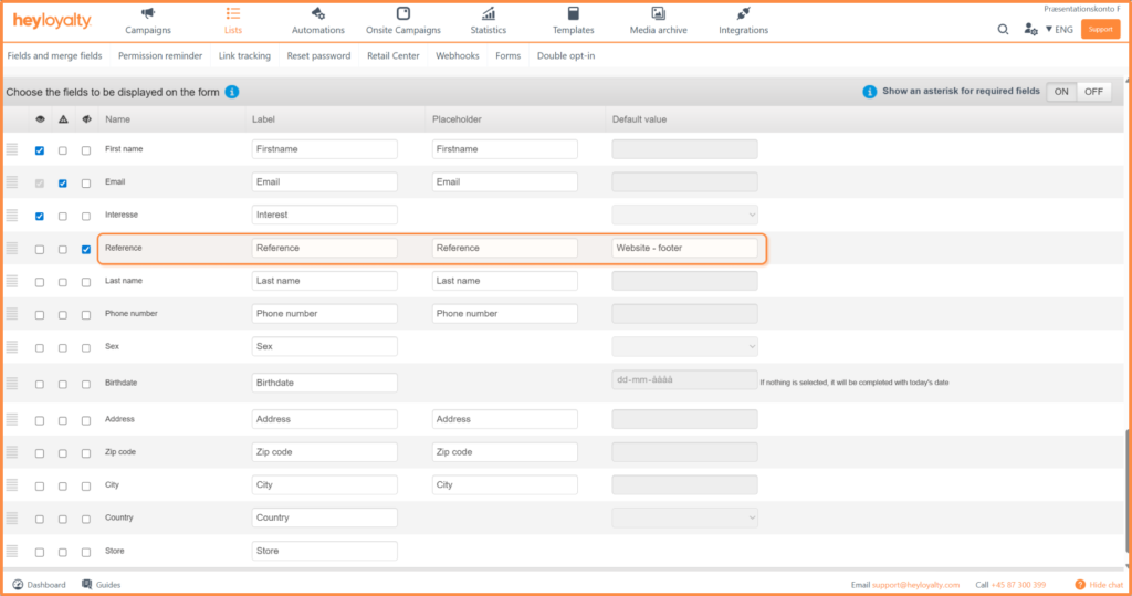 If you’re creating a sign-up form and you know this form will be in the footer of your website, it can be an advantage to add Reference as a Hidden field with value. Here you can include Website – footer. That way, all users who sign up via this form will have the reference Website – footer, which you can later use to segment your mailings. You can also report on how many signups you get from each channel.