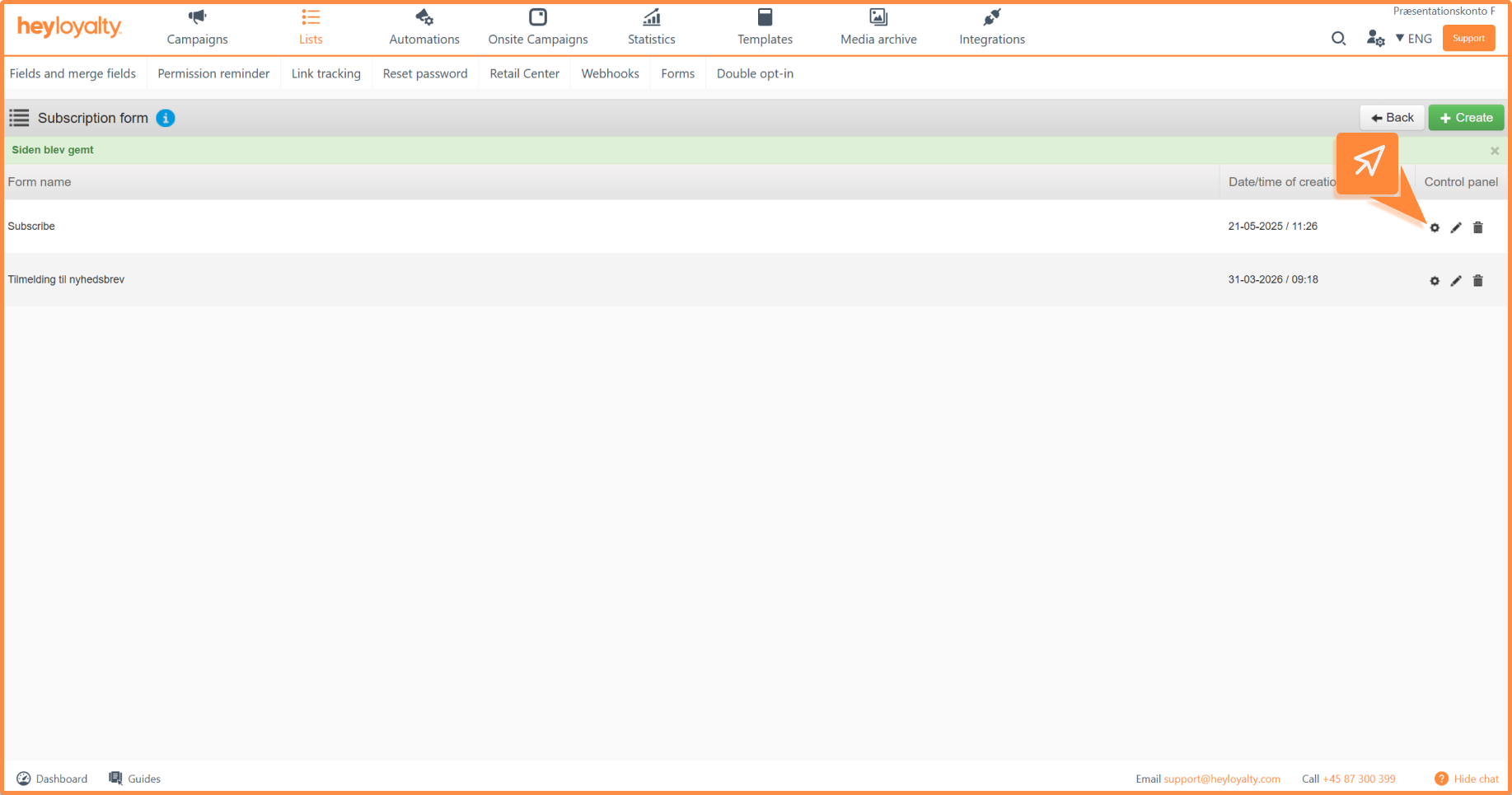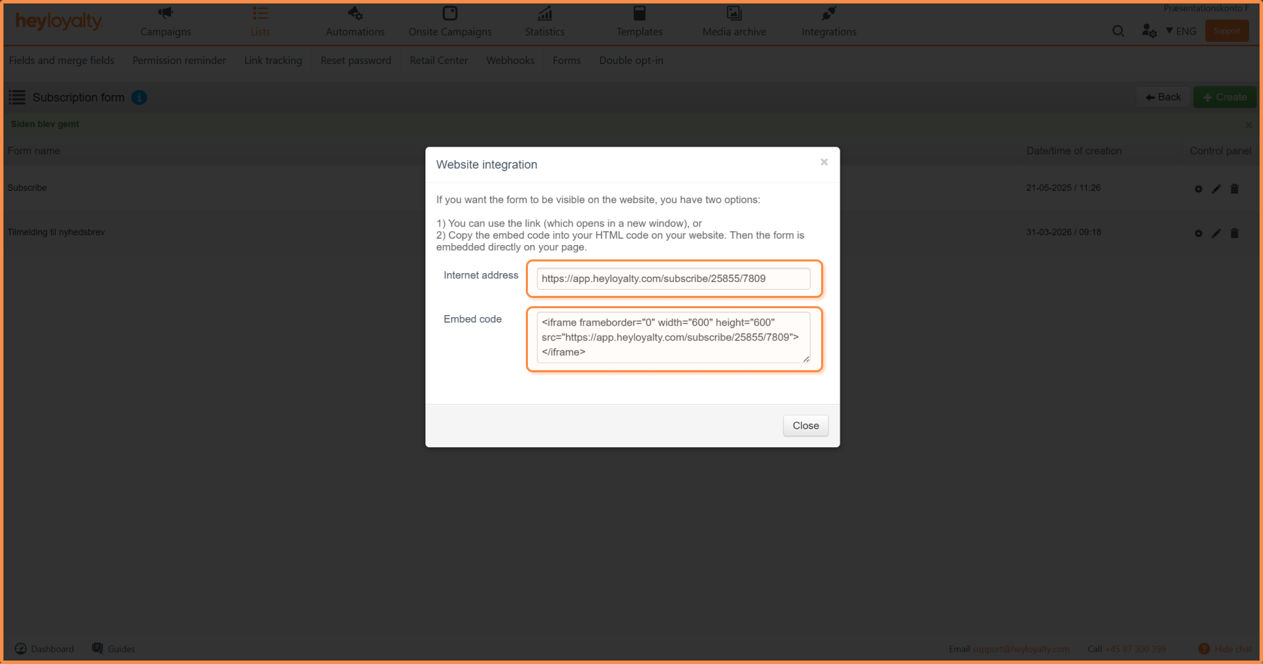On the overview page of your forms of that type on this list, you will also be able to find the Embed code so that you can get the form into your website.