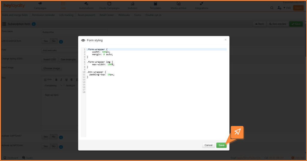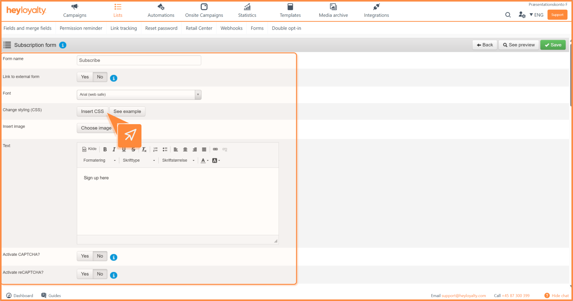 Fill in the information and go through all fields. You can fix styling with CSS by clicking Insert CSS.