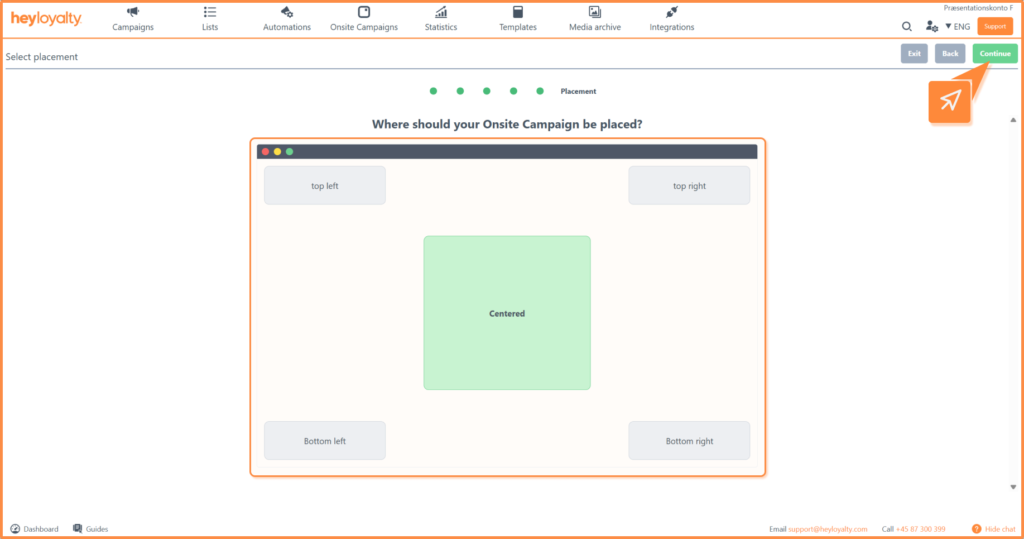 When you are happy with the design, click Continue, where you can see a preview of your onsite campaign on your site and a summary of your settings for that onsite campaign.