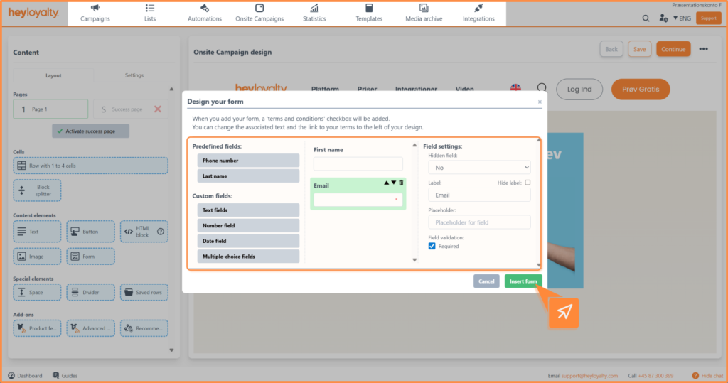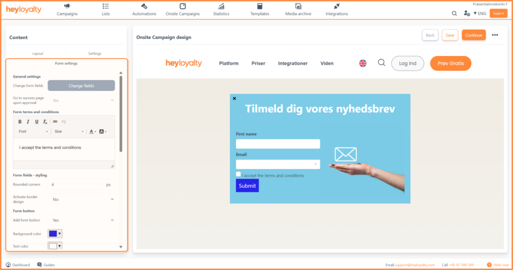 Design your onsite campaign and customize the form according to your company’s needs.