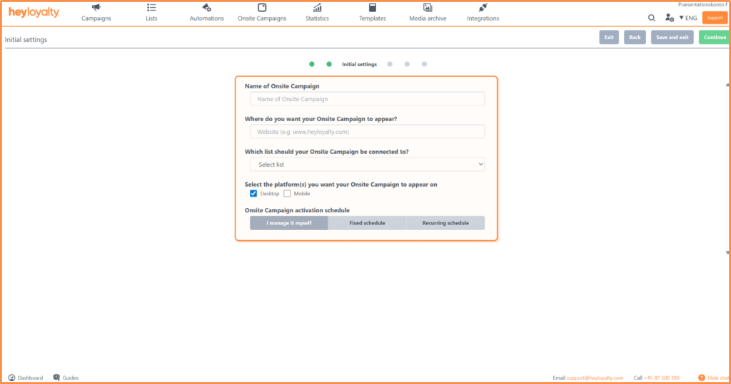 Setup your onsite campaign by clicking on Onsite Campaigns –> Create new Onsite Campaign.