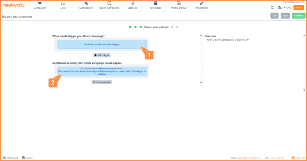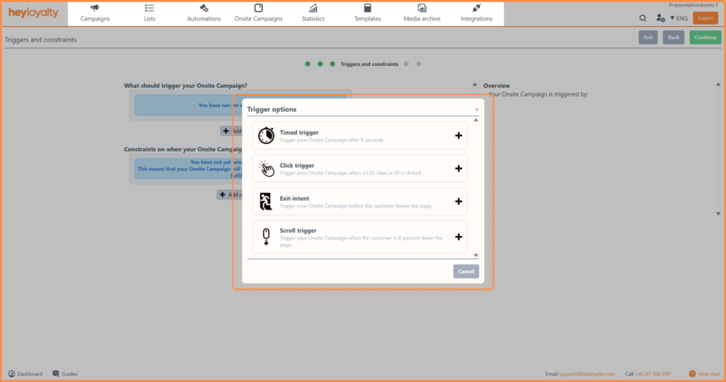 Choose from the different triggers and constraints that control who, when, and why a visitor should see your onsite campaign.