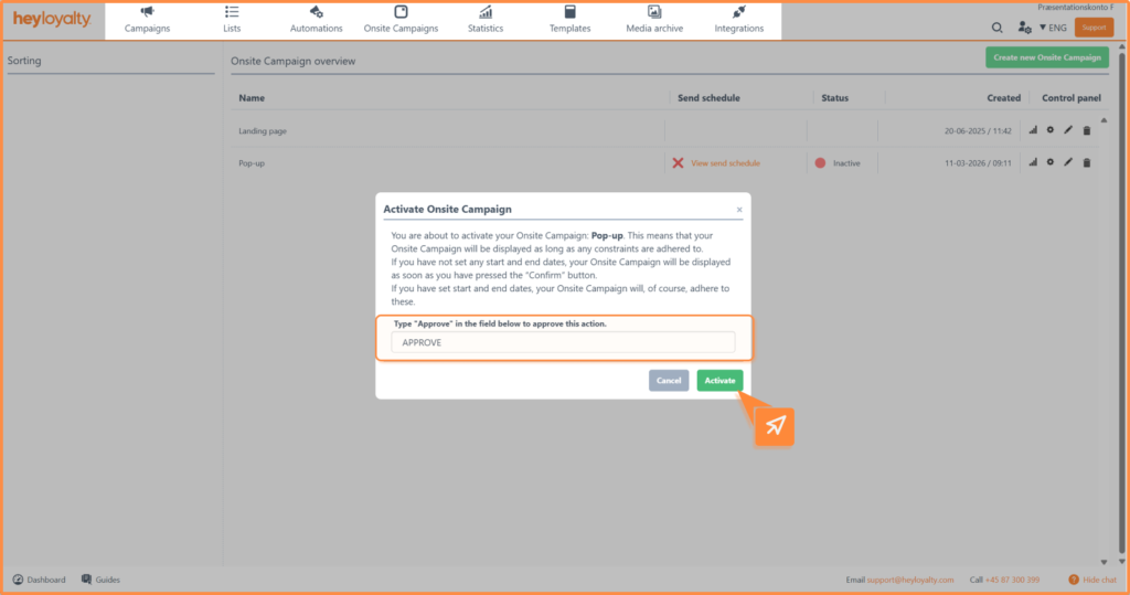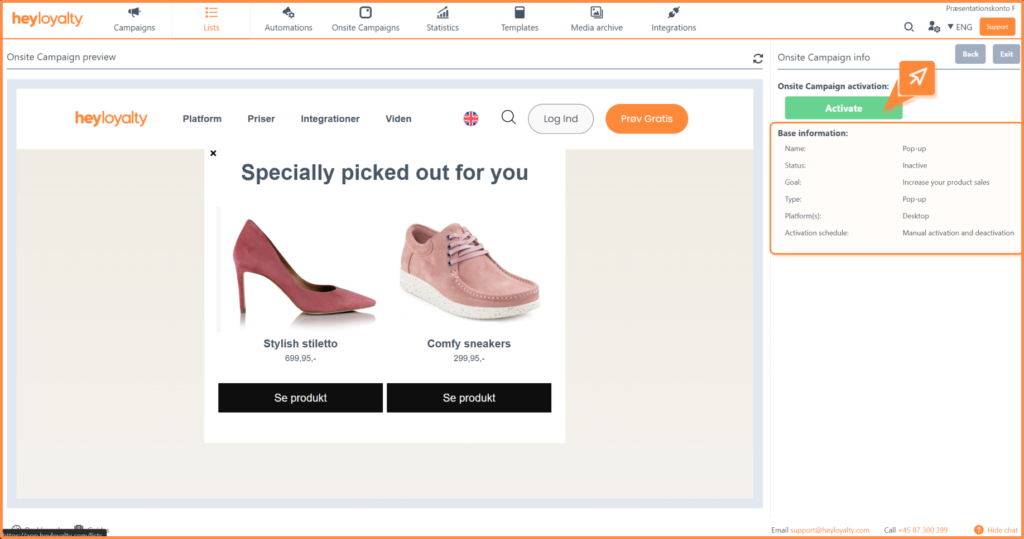 If everything is as it should be, you can just click Activate and your onsite campaign will be live and will be displayed based on the triggers and constraints you selected earlier in the setup.