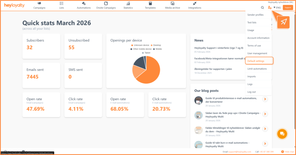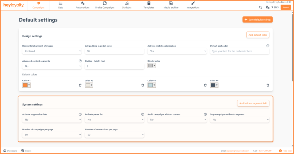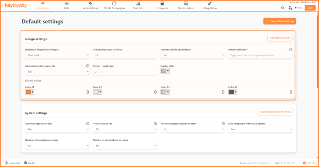 Default settings are so-called global settings on your Heyloyalty account.